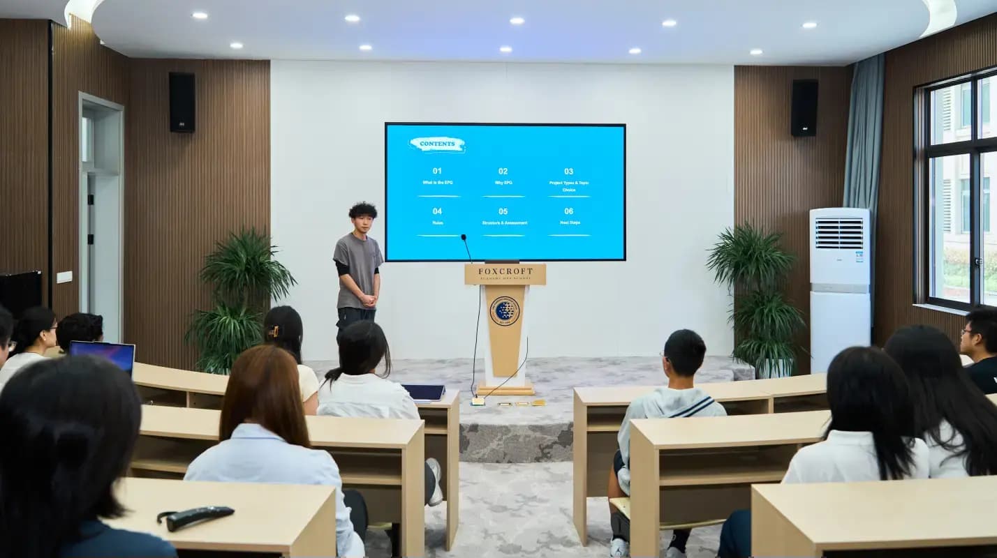 In the PBL program, students can independently choose academic-related learning content, such as preparing for subject competitions, practicing for the IELTS, or receiving university counseling guidance. This cultivates their ability to "take responsibility for themselves and make choices for the future," while fully embodying the International Department's philosophy of "customized learning plans" and "making the best choices for oneself”